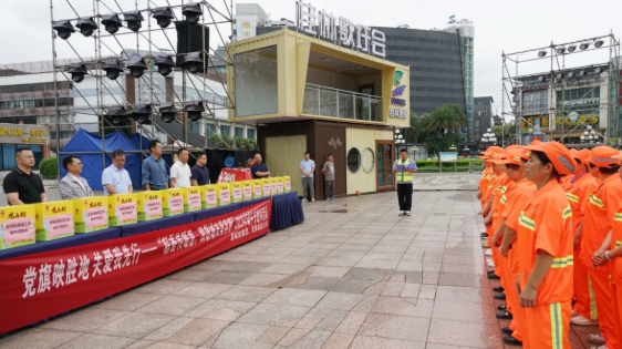 譚力源在講話中回顧了新城投集團(tuán)秀峰區(qū)環(huán)衛(wèi)項(xiàng)目的發(fā)展歷程。作為資產(chǎn)超300億元的綜合性國(guó)有企業(yè),集團(tuán)黨委始終堅(jiān)持黨建與業(yè)務(wù)深度融合、雙向促進(jìn),以“黨旗映勝地”黨建品牌為引領(lǐng),在城市建設(shè)主戰(zhàn)場(chǎng)、城市運(yùn)營(yíng)第一線等領(lǐng)域交出亮眼答卷。他指出,自承接秀峰區(qū)環(huán)衛(wèi)項(xiàng)目以來(lái),項(xiàng)目452名職工以“繡花功夫”守護(hù)城市顏值,在三屆桂林馬拉松賽事和三屆“三月三”民族歌圩薈活動(dòng)的環(huán)衛(wèi)保障、“6.19”特大洪澇災(zāi)害應(yīng)急清淤、漓江河“消劣返清”整治行動(dòng)等重大任務(wù)中沖鋒在前、勇挑重?fù)?dān)。這些成績(jī)的背后,凝聚著每一位環(huán)衛(wèi)職工的心血與汗水,是“勞動(dòng)最光榮”的生動(dòng)注腳。