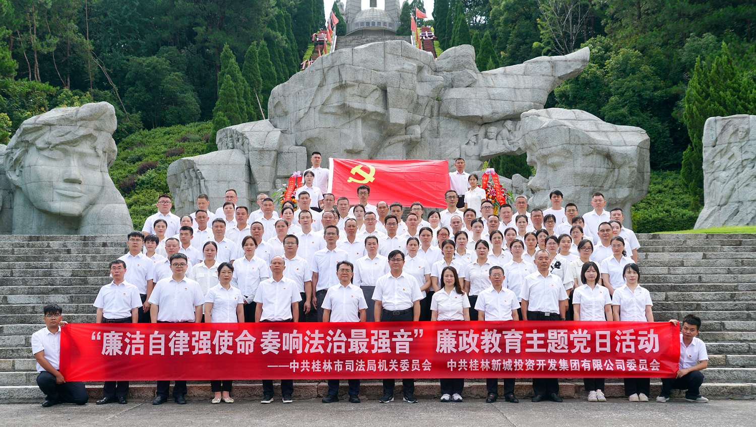活動當(dāng)天,大家首先來到桂林興安縣湘江烈士紀(jì)念碑園,在莊嚴(yán)的紀(jì)念碑前整齊列隊,懷著崇敬的心情向烈士敬獻(xiàn)花籃,表達(dá)對革命先烈的深切緬懷和崇高敬意。在市司法局黨組書記、局長韓覓的帶領(lǐng)下,全體黨員高舉右手,重溫入黨誓詞,堅定為共產(chǎn)主義事業(yè)奮斗終身的信念與決心。